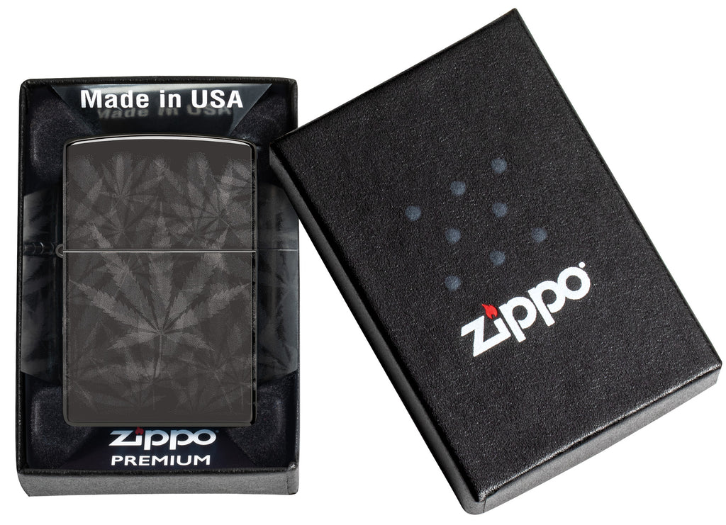 Zippo Cannabis 360 Design, High Polish Black Lighter #48924