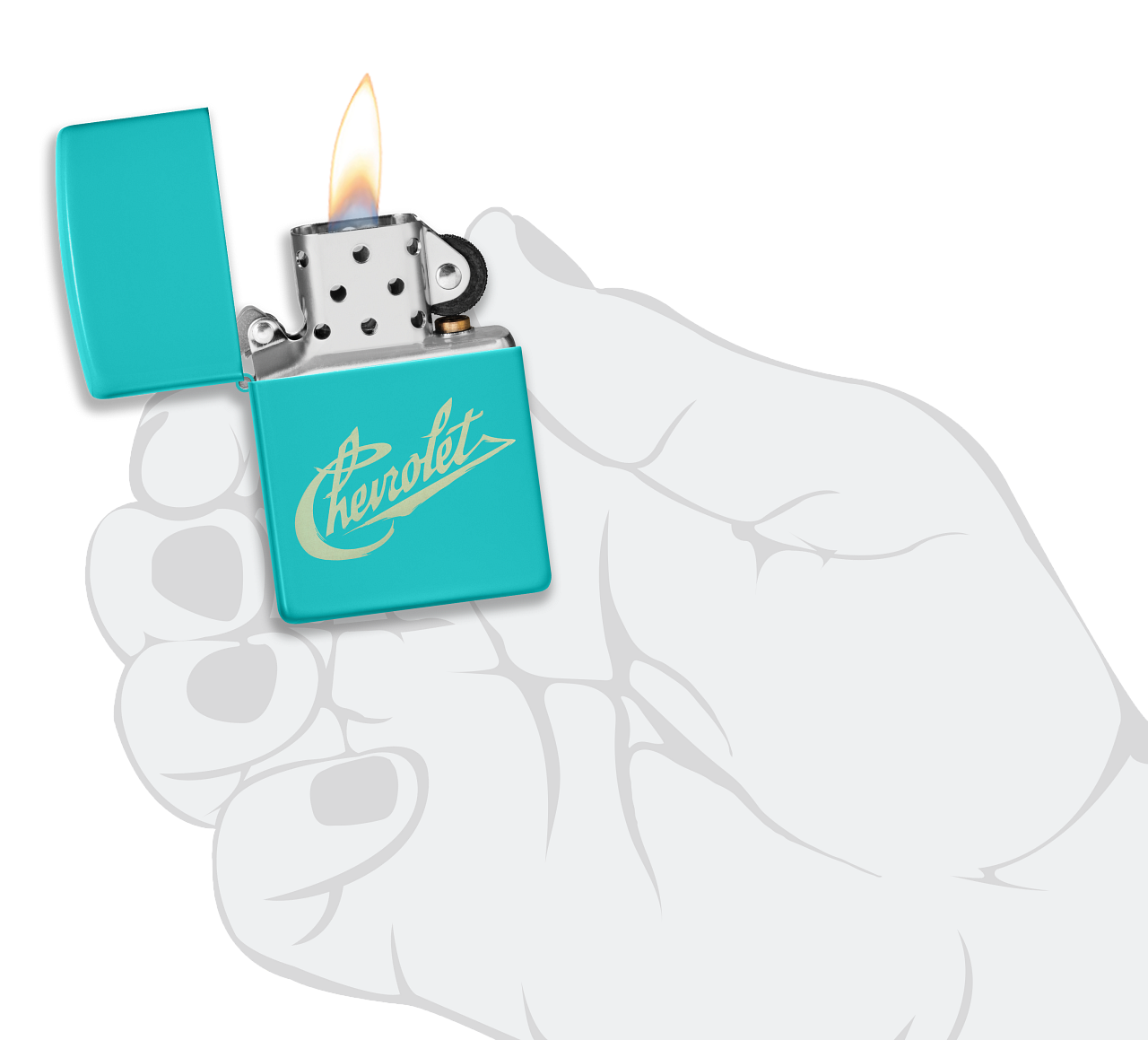 Zippo Chevrolet Flat Turquoise Design, Laser Engrave Lighter #48399