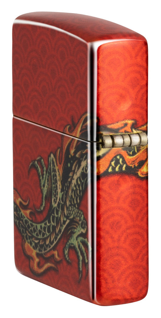 Introducing 540 Fusion: a totally new evolution of two of our most sought-after imprint methods. Shimmering metallic elements and sleek, translucent color palettes – the hallmark of our Fusion process – join forces with our proprietary 540 Color technology to envelop the lighter on all sides for a seamless, iridescent and absolutely stunning end result. This vivid dragon design swirls atop a red geometric backdrop and is complemented by the Zippo logo along one side. Comes packaged in a gift box. For optimal performance fill with Zippo lighter fuel.