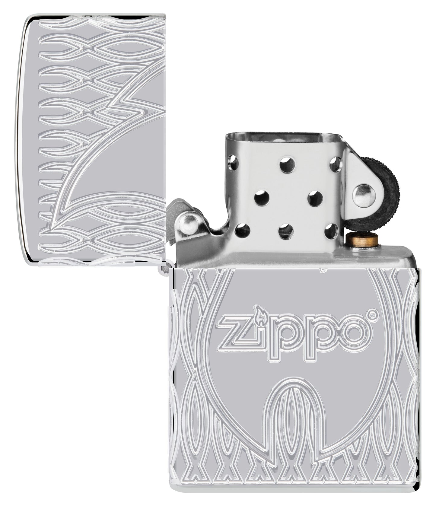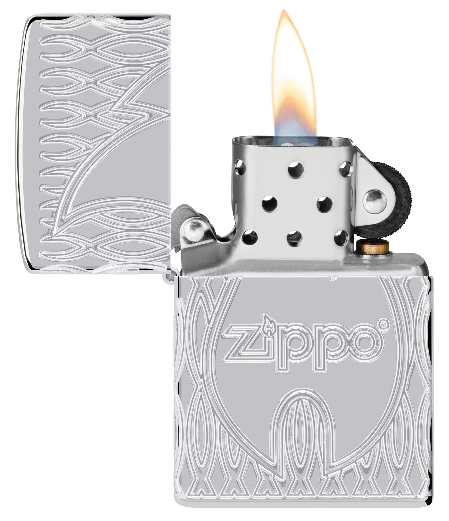 The classic Zippo logo and flame icon command the surface of this exquisite Armor® High Polish Chrome lighter, which is surrounded on all sides by a textured geometric motif in a luxurious MultiCut design. Comes packaged in a gift box. For optimal performance, fill with Zippo lighter fuel.