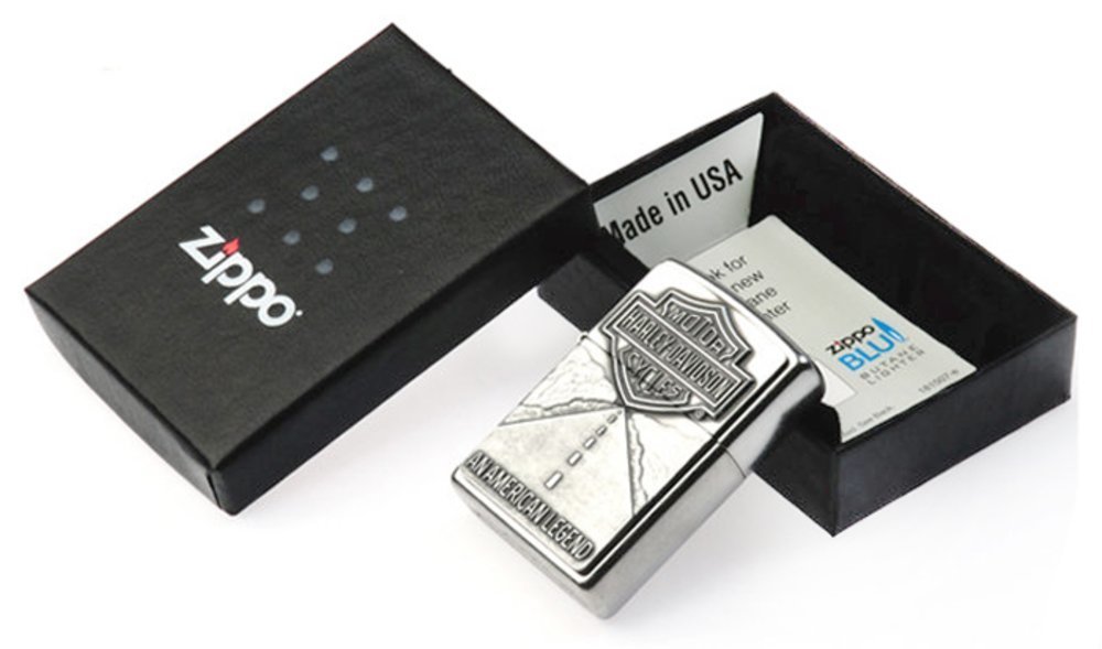 For years, Harley-Davidson and Zippo enthusiasts have shared their journeys with the rumble of a Harley-Davidson motorcycle and the click of a Zippo lighter. Start your journey with this Street Chrome Zippo lighter. This genuine Zippo windproof lighter is packaged in a Harley-Davidson branded cardboard gift box with the famous Zippo lifetime guarantee.