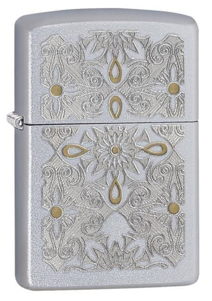 Catch someone’s eye with this attractive Satin Chrome windproof lighter. An engraved floral design with gold accents allows this lighter to grab everyone’s attention when you spark up this lighter. For optimal performance, use with Zippo premium lighter fluid. Comes in an environmentally friendly cardboard gift box