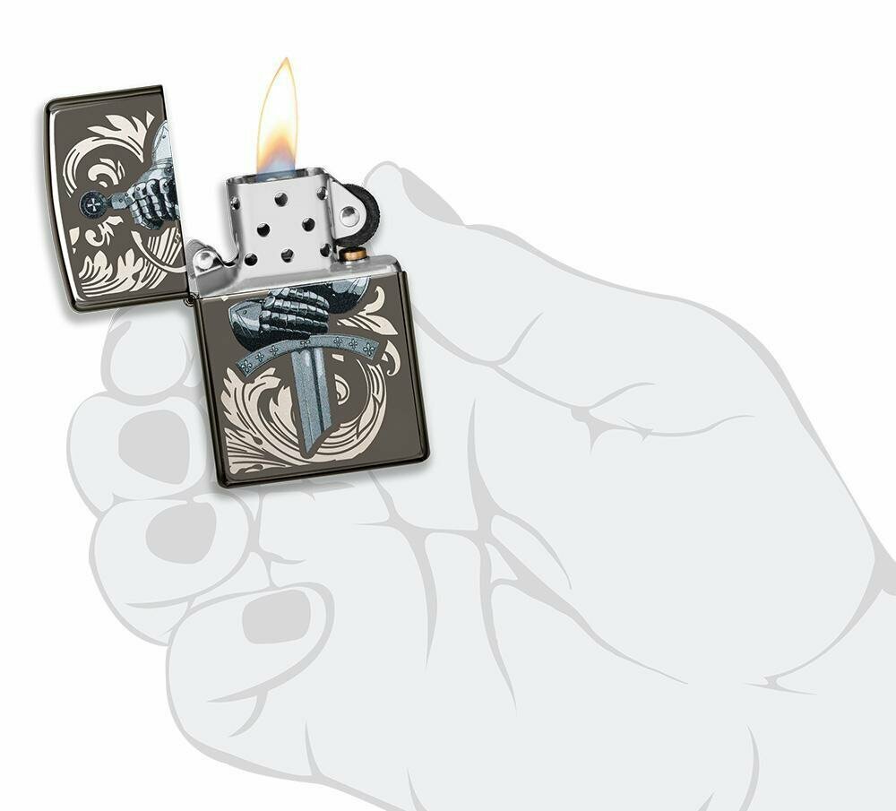 Zippo Medieval Knights Glove and Sword, Black Ice Finish Pocket Lighter #49127