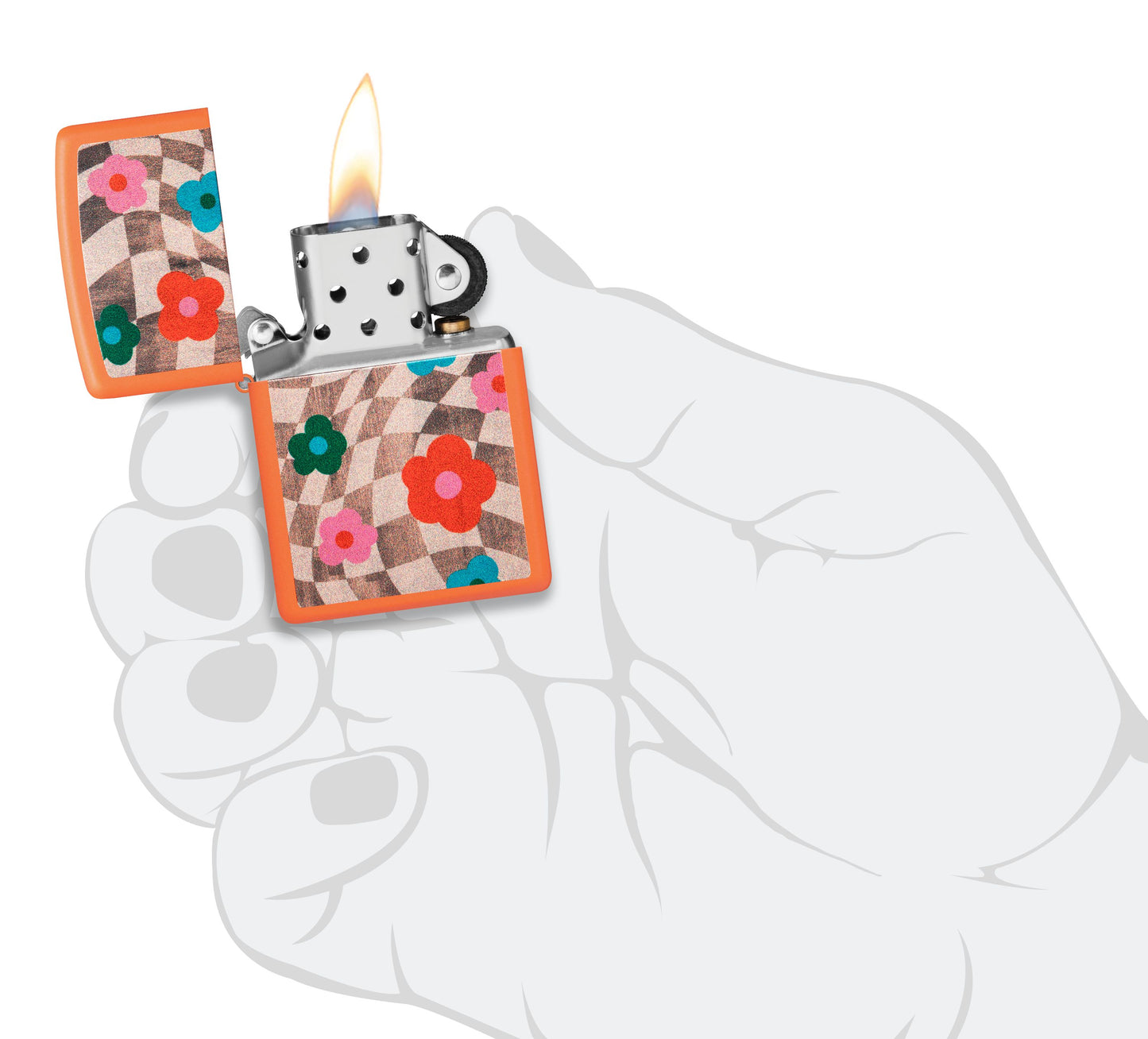 Zippo Nostalgia Flower Chessboard, Orange Matte Lighter #48718