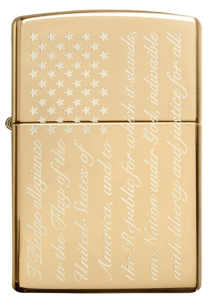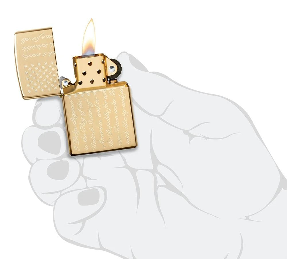 Zippo Pledge of Allegiance USA Design, High Polish Brass Lighter #49585