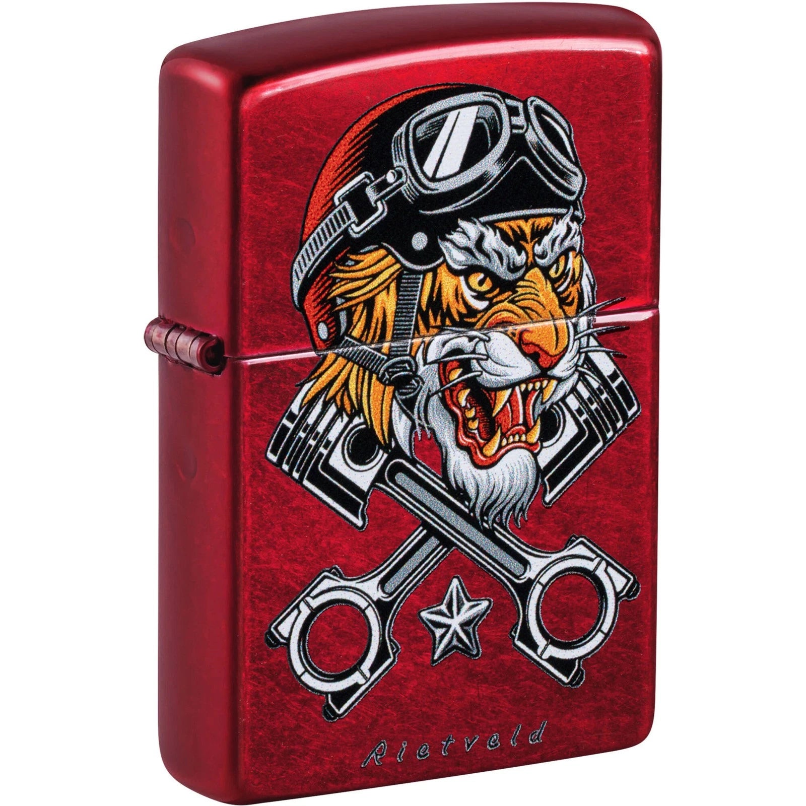Zippo Rietveld Biker Tiger Candy Apple Red Lighter #46934