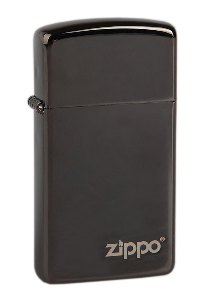Zippo Slim Ebony with Logo Lighter, High Polish Black, Windproof #28123ZL
