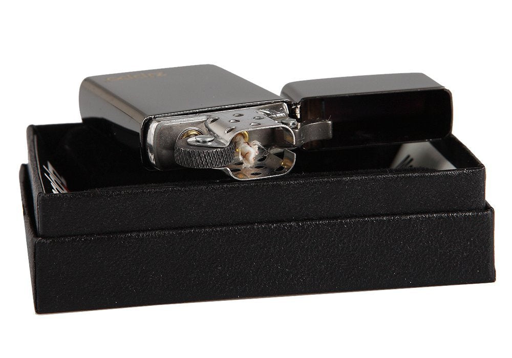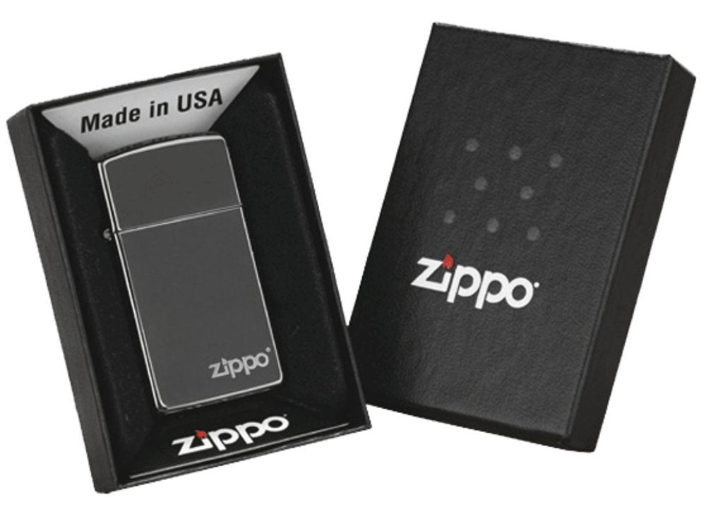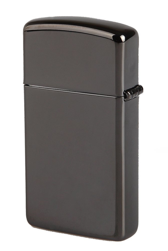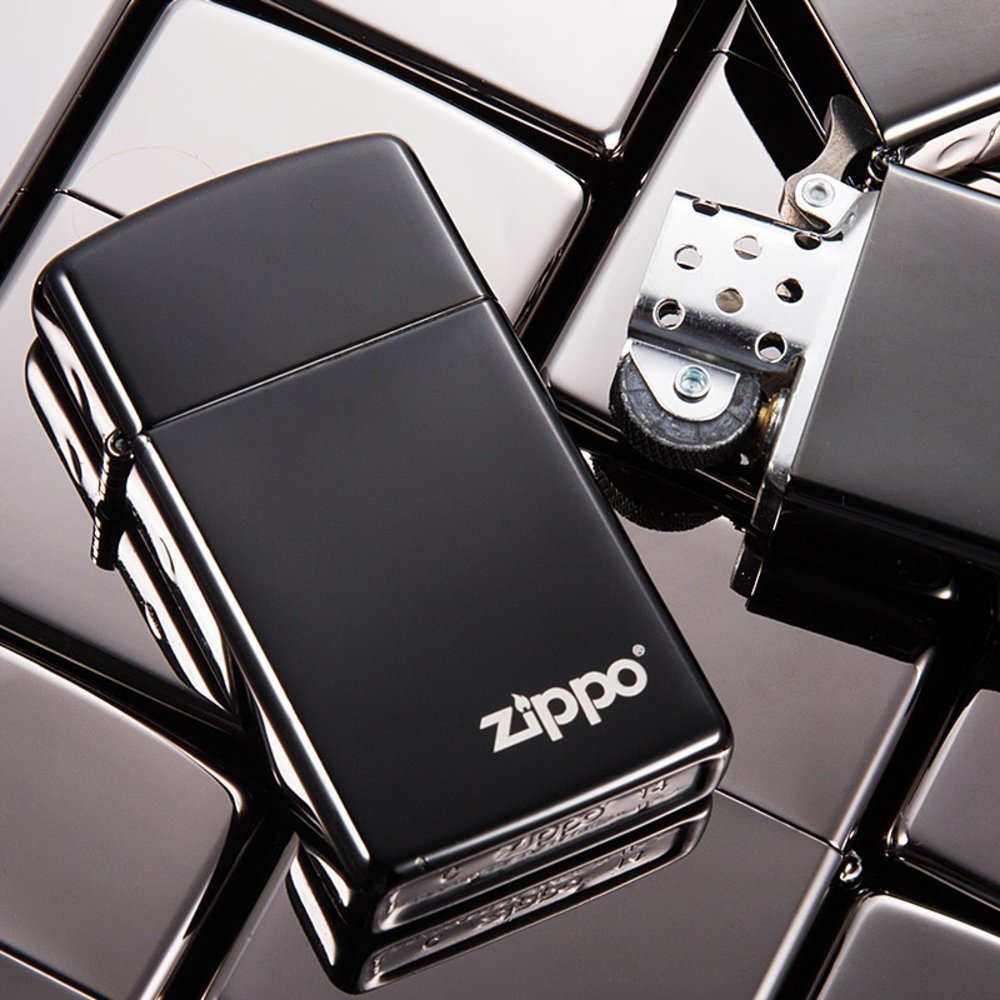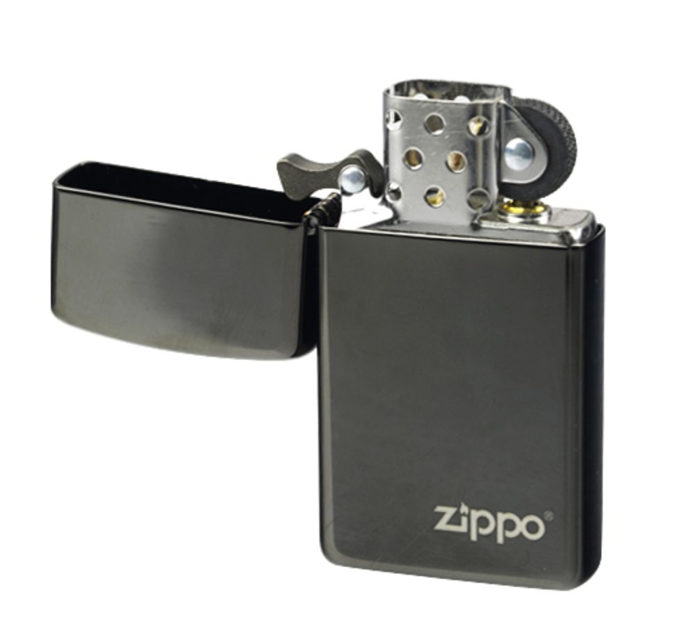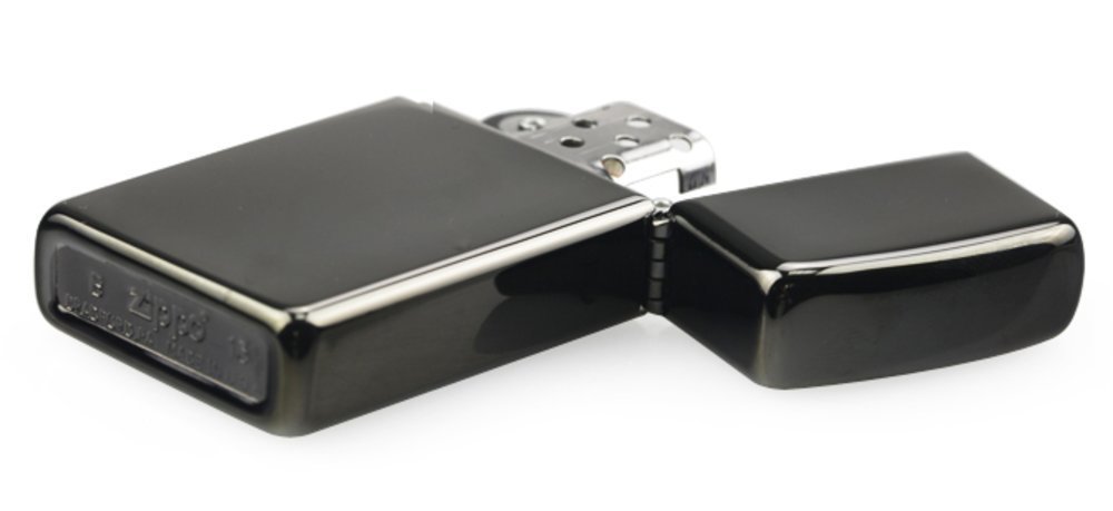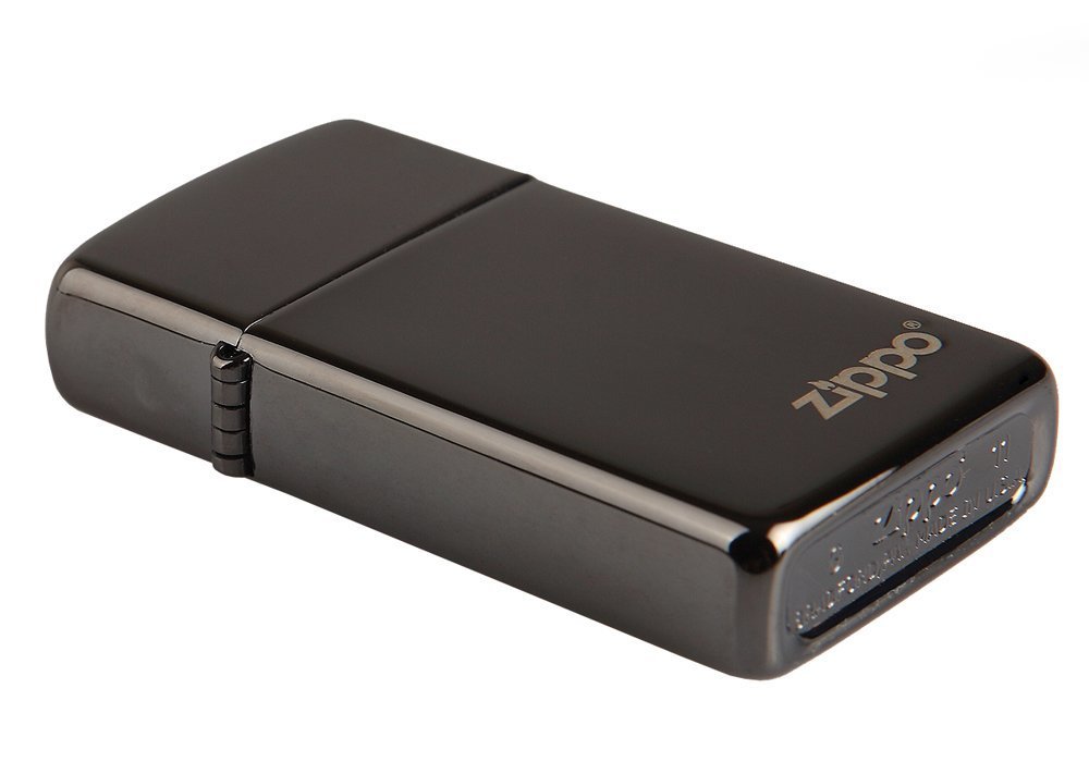 This windproof lighter is almost as dark as night. This Slim chrome plated lighter with Zippo logo is bonded with a micro thin, scratch resistant coating to achieve Ebony, Zippo’s luminous, intense black, mirror-like finish. For optimum performance, use with Zippo premium lighter fluid. Comes in an environmentally friendly cardboard gift box