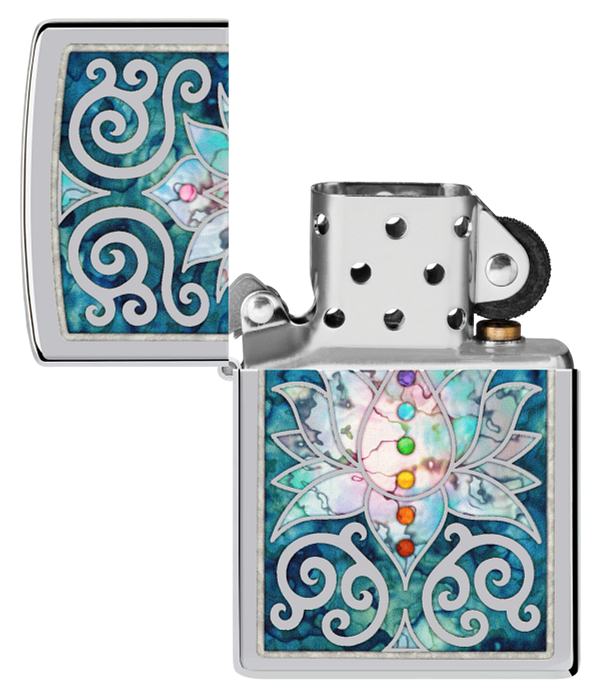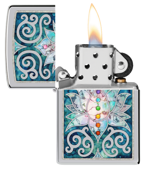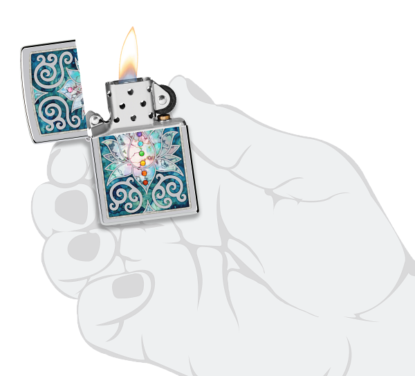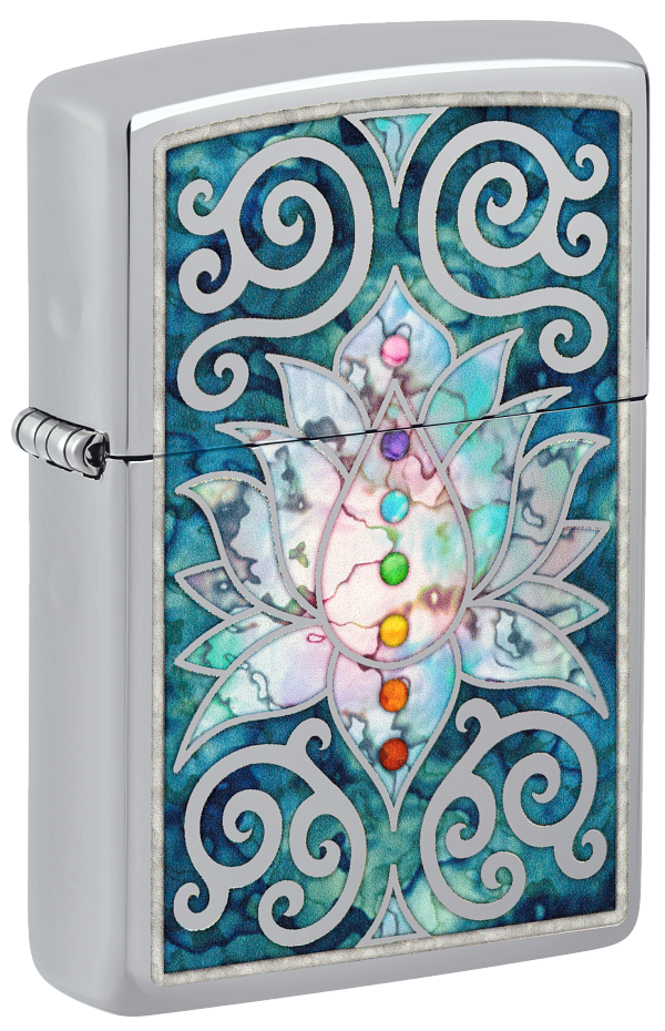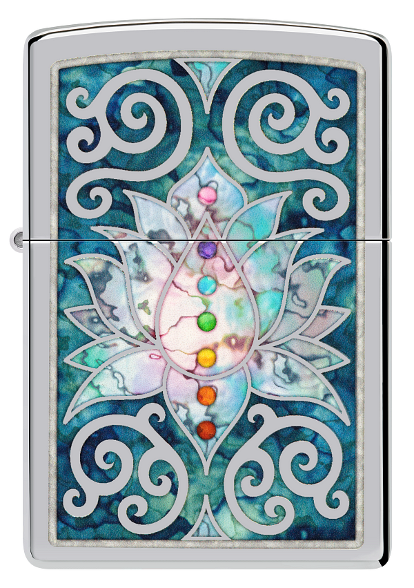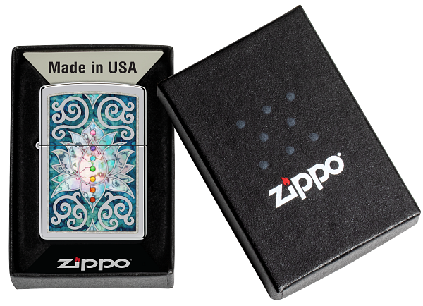 Zippo Spiritual Meditation Design, High Polish Chrome Lighter #48592